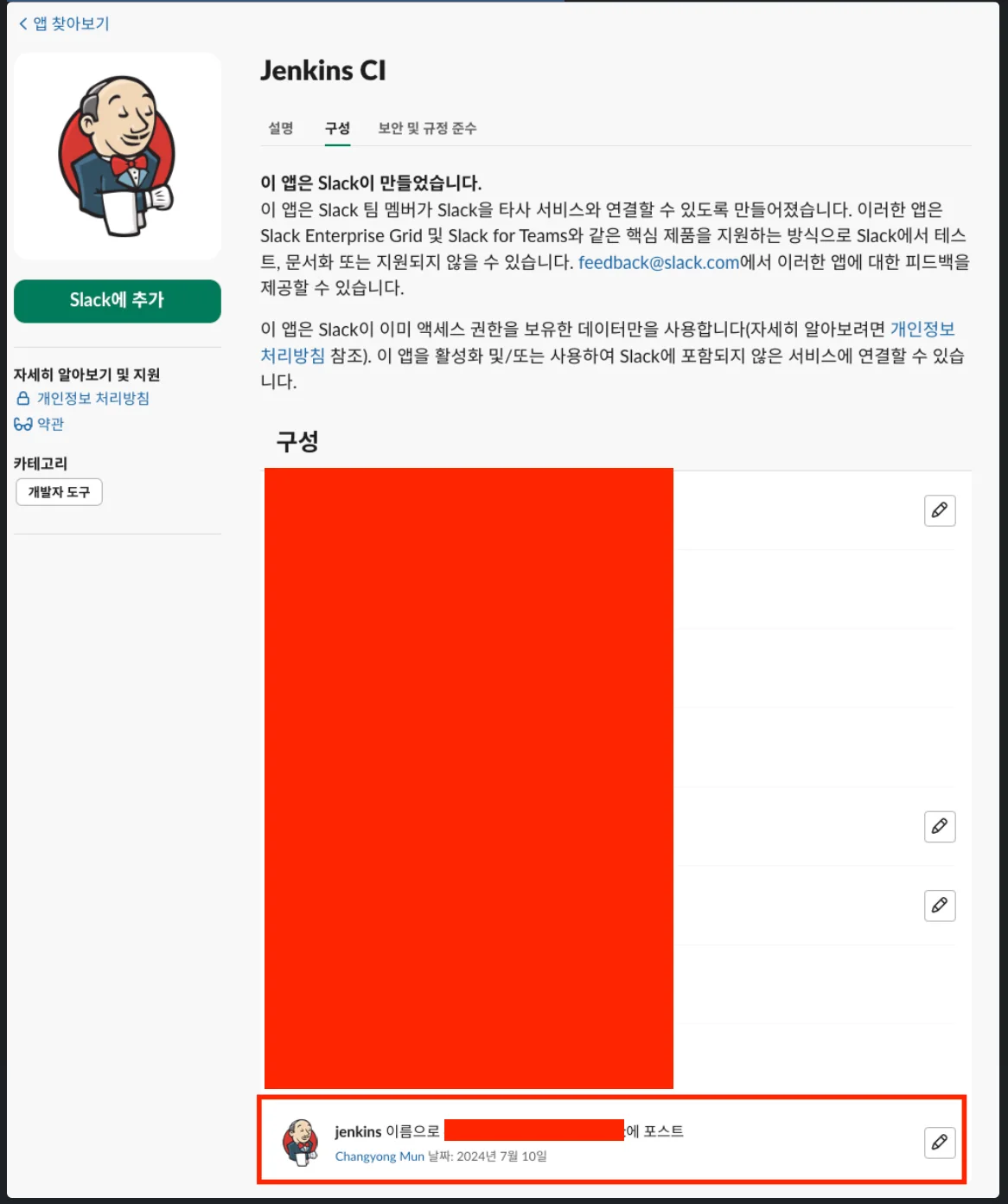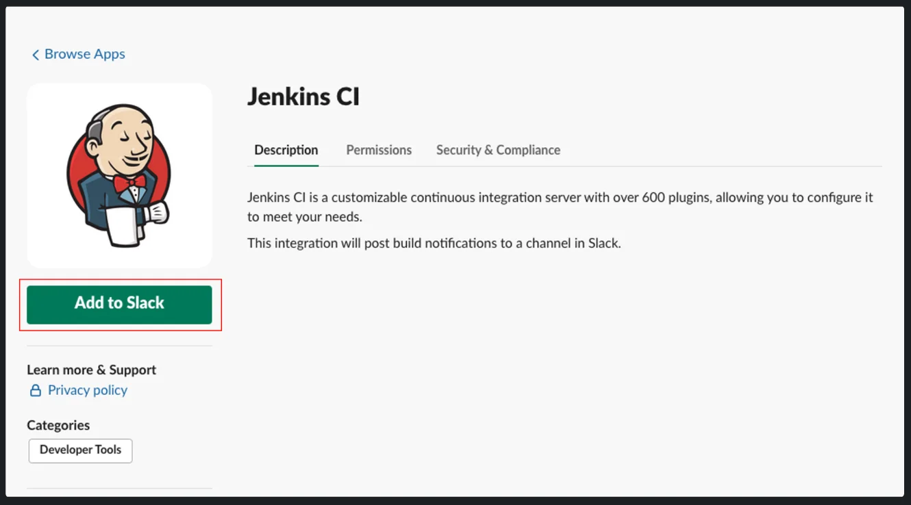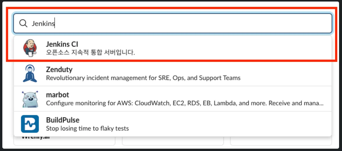 3. 슬렉 앱 디렉토리에서 Jenkins CI 검색