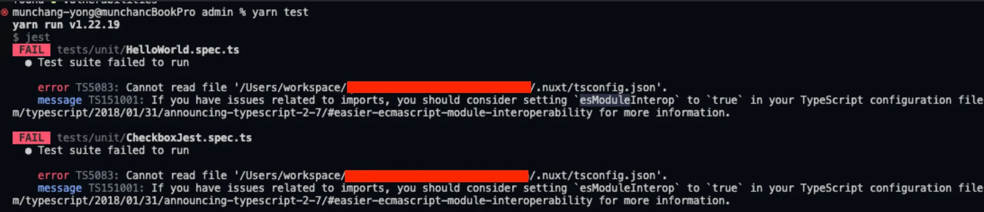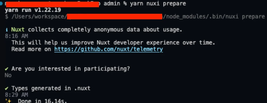 • 기존 디렉토리의 repository에서 tsconfig.json 파일의 extends 구문이 에러가 발생하는데 .nuxt의 폴더의 경로에 tsconfig.json이 없어서 yarn nuxi prepare 명령어를 통해 자동으로 해당 폴더를 만들고 실행하여 해결하였다.