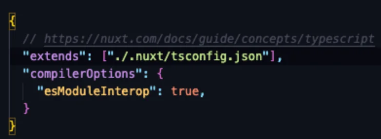 • 해당 파일에는 Nuxt 또는 사용 중인 모듈에 의해 주입된 확인된 별칭을 포함하여 프로젝트에 권장되는 기본 TypeScript 구성이 포함되어 있으므로 ~/file 또는 #build/file과 같은 별칭에 대한 전체 type support 및 경로 자동 완성을 얻을 수 있다.